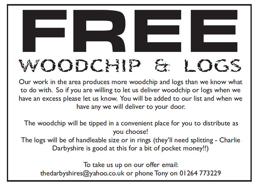 Free Woodchip and Logs Mar11 by Monxton Matters Share this: Click to share on Facebook (Opens in new window) Facebook Click to share on X (Opens in new window) X Click to email a link to a friend (Opens in new window) Email Like Loading... Related