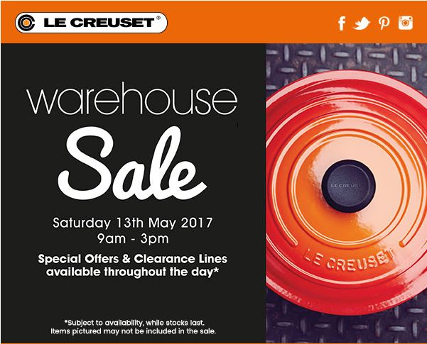 Le Creuset Warehouse Sale 13 May Apr13 by Monxton Matters Share this: Click to share on Facebook (Opens in new window) Facebook Click to share on X (Opens in new window) X Click to email a link to a friend (Opens in new window) Email Like Loading... Related