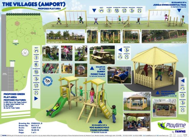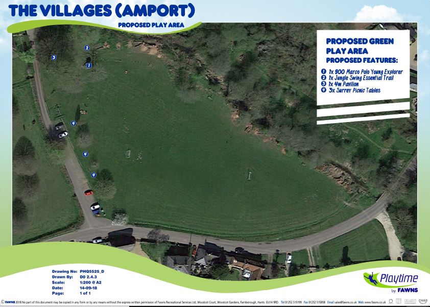 Amport Parish Council & the Playground Refurbishment Committee are incredibly excited about the new plans. We have already sourced funding from a combination of local sources and grants, so this project can finally be realised. We hope you are also pleased with the layout and choice of equipment. It is important to note (and as the plan illustrates) all the equipment will sit within the existing tree-lined area on Amport Green, it will not encroach on the Green any further, allowing us all to enjoy its full use and potential as we already do.