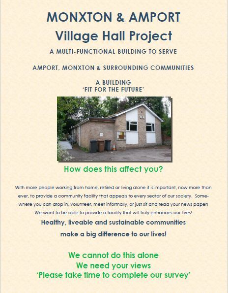 Monxton Matters (https://monxton.org.uk/) and The Amport Village and Parish websites (http://amportvillage.co.uk/) will be the primary interfaces to keep you informed of developments and we will be holding open days at the Village Hall:
