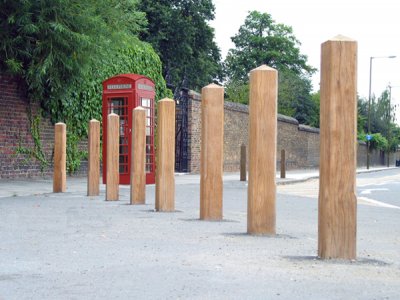 All bollards are durable hardwood and harmonise well with natural environments. The Ashdown & Epping ranges of bollards are extremely strong and have a good fire resistance, and are made from strong hardwoods such as greenheart, wallabe or opepe. The Garrick bollards are made from oak. Although more choices were shown at the EGM, only the bollards that are between 800-1000mm high are shown, as this height was recommended for protection against HGVs.
