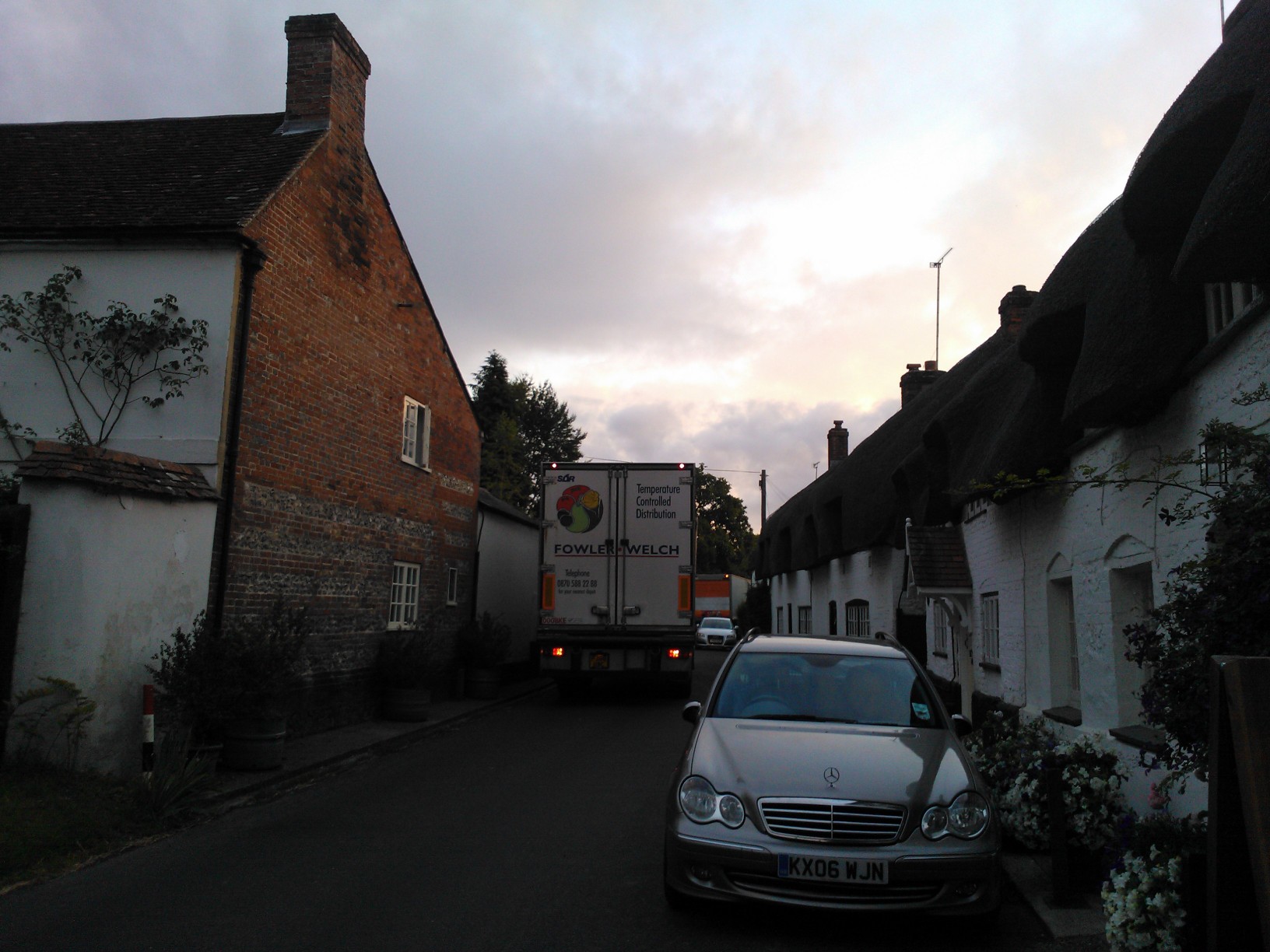 At 1.03am this morning (24 July) an HGV lorry was trying to squeeze past the Mucky Duck. Residents were woken by the commotion and several men looked like they were trying to move cars or find away through. The lorry had all hazard lights on …… Why was it here?
